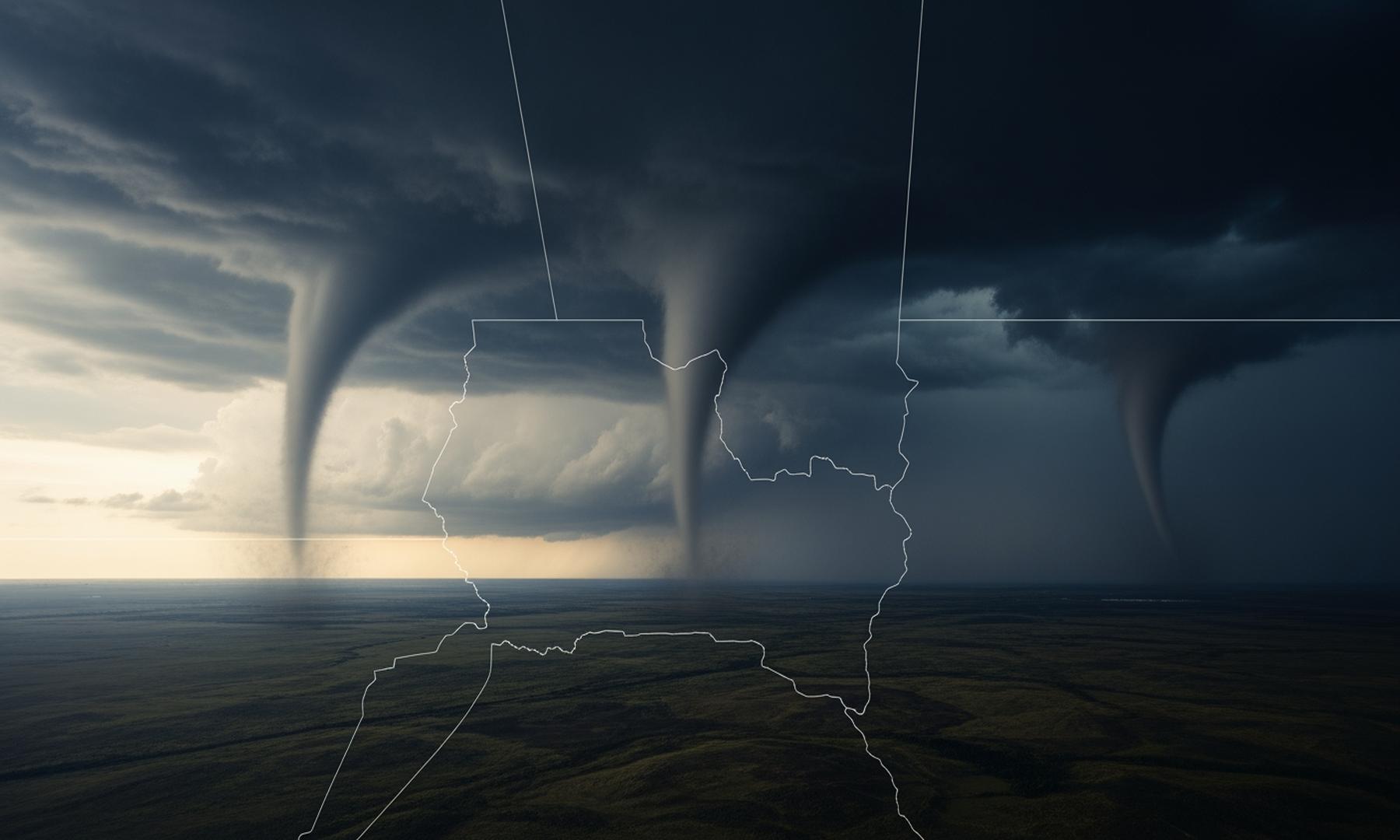 • Tornado watch issued across four states, indicating potential for severe weather.
